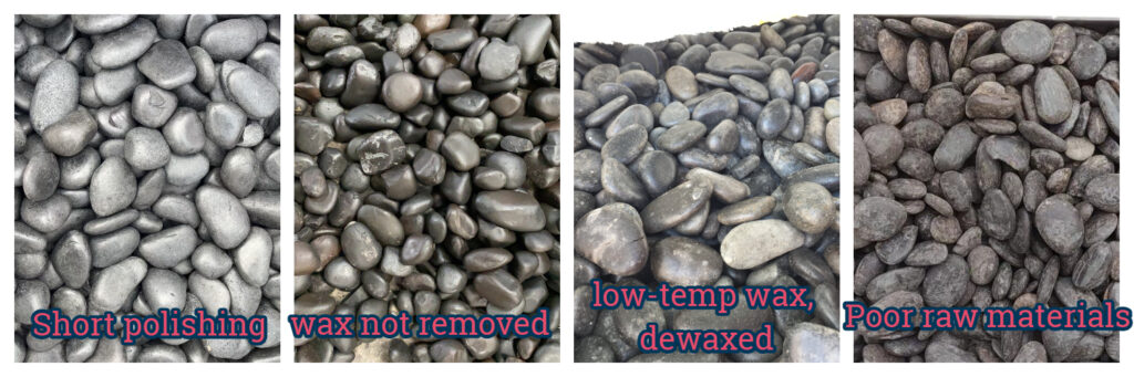 Natural river pebbles are typically gray before processing. Through polishing and waxing, they transform into the deep, shiny black stones that customers love. But this “magic” requires precision, expertise, and the right materials. Here’s what sets high-quality pebbles apart: